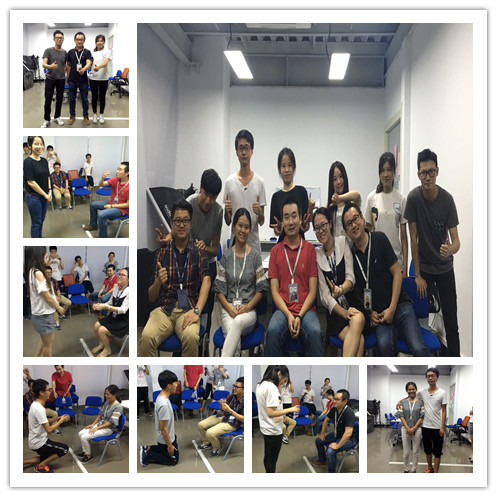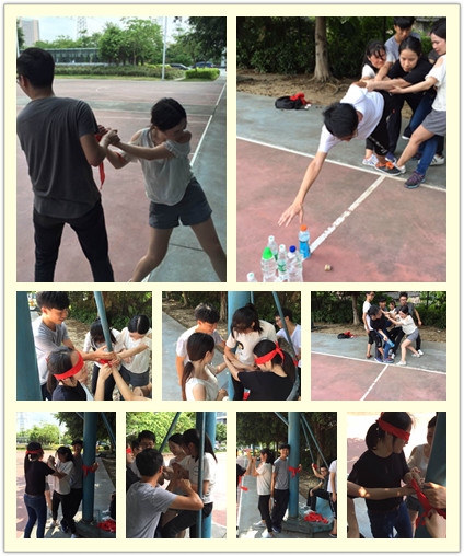 一個(gè)盲人三角,群龍取水的游戲,讓他們找過團(tuán)隊(duì)合作的默契.