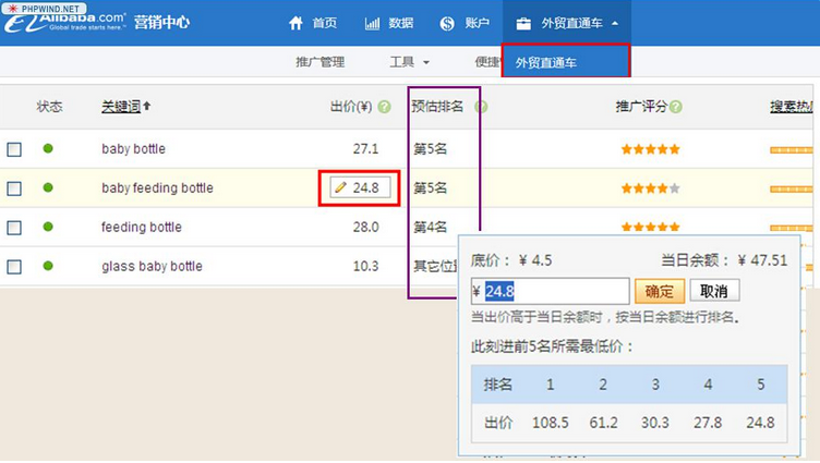 2星、1星詞:不能出價購買前5名,只能出現(xiàn)在搜索界面右側(cè),底部;(建議刪除)