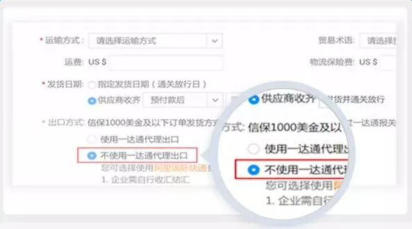 起草訂單總價在1000美金及以下訂單時,供應(yīng)商可選擇不使用一達(dá)通代理出口。